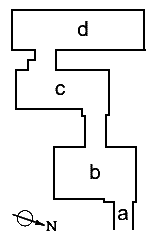 b Vestibül c Hauptsaal d Grabkammer |