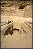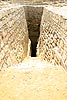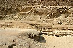 Der Eingang zu den unterirdisch angelegten Grabräumen liegt an der Nordseite vor der untersten Stufe. Das Grab des Djoser wurde wie so viele schon in der Antike betreten. An der Südseite der Pyramide ist deutlich der Eingang eines in saitischer Zeit gegrabenen Stollens zu erkennen, der in den großen mittleren Schacht mündet. Ob es sich hier um das Werk von Grabräubern oder einen ersten Versuch der Freilegung des Bauwerks handelt, ist reine Spekulation. Jedenfalls ließen sich die Baumeister der saitischen Gräber mit ihren tiefen Schächten zweifellos durch die Bauwerke Djosers inspirieren. |