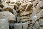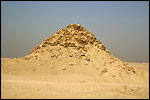 ![]() | Userkaf, der Begründer der 5.Dynastie, ließ sich sein Grab nicht in der Nähe seiner Vorgänger errichten, sondern wählte einen Platz an der Nordostecke von Djosers Stufenpyramide. Den Eingang entdeckte Marucchi zwar schon 1831, aber erst Perring stieß später ins Innere der Pyramide vor. Durch die Grabungen von Firth im Jahre 1928 konnte sie schließlich Userkaf zugewiesen werden, da man sie vorher für die Pyramide von Djedkare hielt. Sie war aus grob behauenen Kalksteinblöcken erbaut und mit Turakalkstein verkleidet. Schon im Altertum war sie Quelle für Baumaterial und ist heute sehr verfallen. Der Eingang befindet sich nicht wie bei seinen Vorgängern in der Nordwand, sondern im Pflaster des Hofs davor. Der absteigende Gang führt zunächst in einen waagerechten Gang, in dessen Mitte sich eine Granitblockierung befand. |