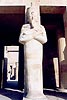 Durch ein Tor aus Granit betritt man die obere Terrasse, einen von Säulen umgebenen Hof. Links befinden sich die Gedenkkapellen für Hatschepsut und ihren Vater Thutmosis I., rechts eine Kaplle, die dem Sonnenkult des Re-Harachte geweiht war. Geradeaus befindet sich das Hauptheiligtum von Amun , wo während des "Schönen Festes vom Wüstental" die Barke des Gottes auf einem Podest abgestellt wurde. Nach dem Tod der Hatschepsut zerstörte ihr Nachfolger Thutmosis III. ihre Bilder und ließ ihren Namen tilgen und durch seinen oder den seines Vaters ersetzen. Die Statuen wurden nahe dem Tempel der Hatschepsut in Felslöcher rechts und links des Prozessionsweges gestürzt. Unter Echnaton kam es zu weiteren Verwüstungen. Haremhab begann mit der Restaurierung, die unter Ramses II. und Merenptah fortgesetzt wurde. Im 7.Jh. erfuhr der Tempel weitere Veränderungen, als ein koptisches Kloster einzog, dessen Name sich in der Ortsbezeichnung Deir el-Bahari ( "Nördliches Kloster") bis heute erhalten hat. |