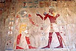 | In Deir el- Bahari wurden drei Tempel errichtet: der Tempel des Mentuhotep, der Hatschepsut und des Thutmosis III. Davon ist der Tempel der Hatschepsut der berühmteste und meistbesuchte Tempel. |
